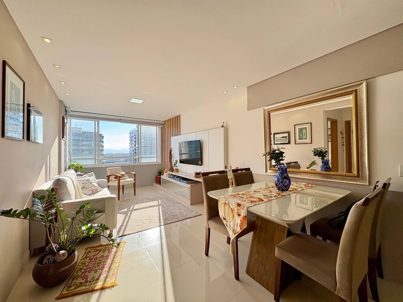 Apartamento com mais de 75 metros de área privativa, sacada de frente com vista liberada, prédio com 2 elevadores, água quente e gás central, higrómetros individuais.